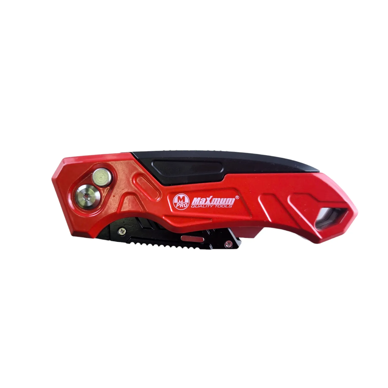 Нож строительный/канцелярский с кнопкой для быстрой смены угла резки и системой Quick Change для быстрой смены лезвий от "Maximum Quality Tools" предназначен для разрезания гипсокартона, бумаги, обоев, картона, ковролина, линолеума и т.п. Стильный металлический корпус дополнен резиновыми вставками и отсеком для запаски.