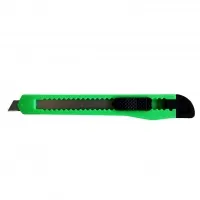 Нож канцелярский с фиксатором оборудован сегментированным лезвием шириной 9 мм и поставляется в различных цветах. Канцелярский нож 12 см предназначен для резки бумаги, картона, ткани и пластика. Ребристый пластиковый корпус надежно лежит в руке и не скользит. Отламывающиеся сегментированные стальные лезвия не боятся коррозии и имеют качественную заводскую заточку. Система фиксации лезвия push-lock и насадка для безопасного отделения сегмента лезвия делают работу безопасной.