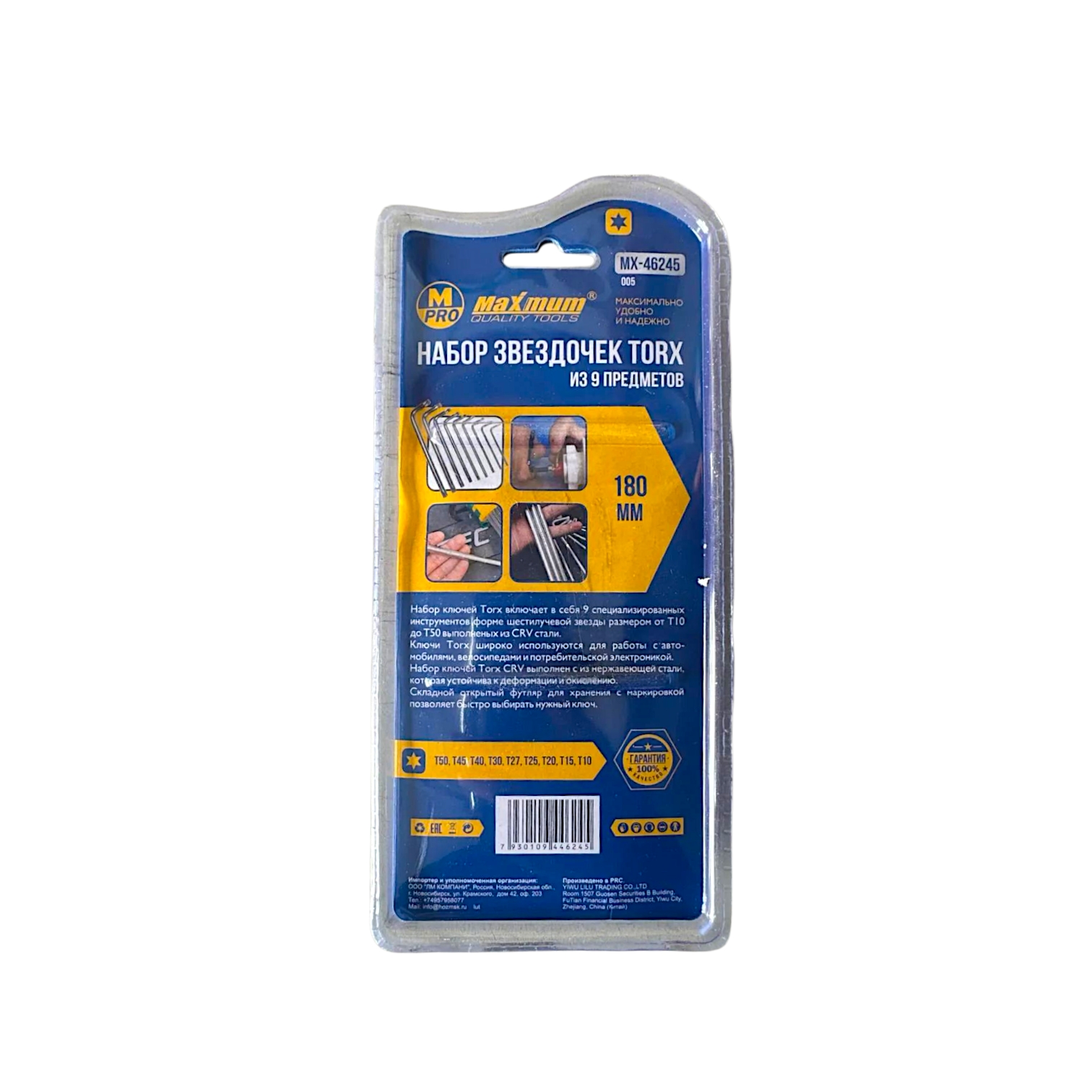 Набор из 9 Torx ключей 180 мм "Maximum" (Максимум) MX 46245 — это 9 Г-образных двусторонних ключей звездочка в компактном складном футляре. Инструменты предназначены для работы с крепежом Torx, который широко используется в автомобилях, велосипедах, тормозных системах, топливной аппаратуре, жестких дисках, банкоматах и электронике.