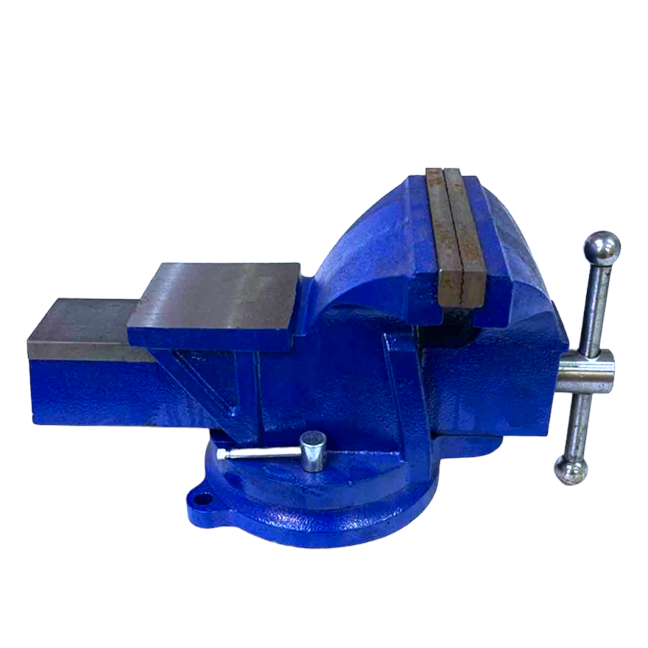 Массивный чугунный корпус и основание покрыты краской, защищающей тиски от коррозии.
