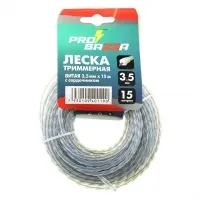 Леска 3.5 мм, 15 м, витая с графитовым наполнителем от "Probazza" подходит для скашивания как густой зеленой травы, так и сухого многолетнего кустарника. Имеет отличную режущую способность, низкий шум и позволяет значительно снизить вибрацию. Леска выполнена из прочного нейлона и графитового наполнителя. Этот двухкомпонентный состав обеспечивает исключительно высокую износостойкость и повышенную устойчивость к разрыву.
