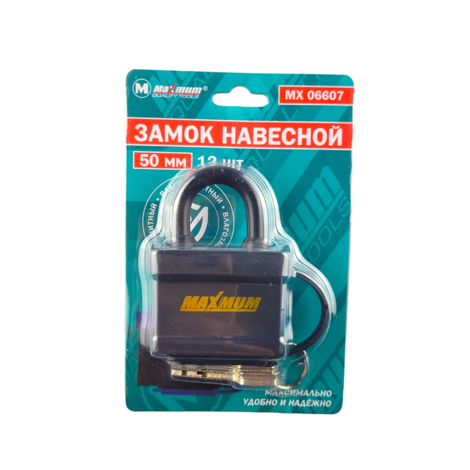 Замок навесной всепогодный 50 мм от «Maximum» надежно защищен от воды, грязи и оледенения.