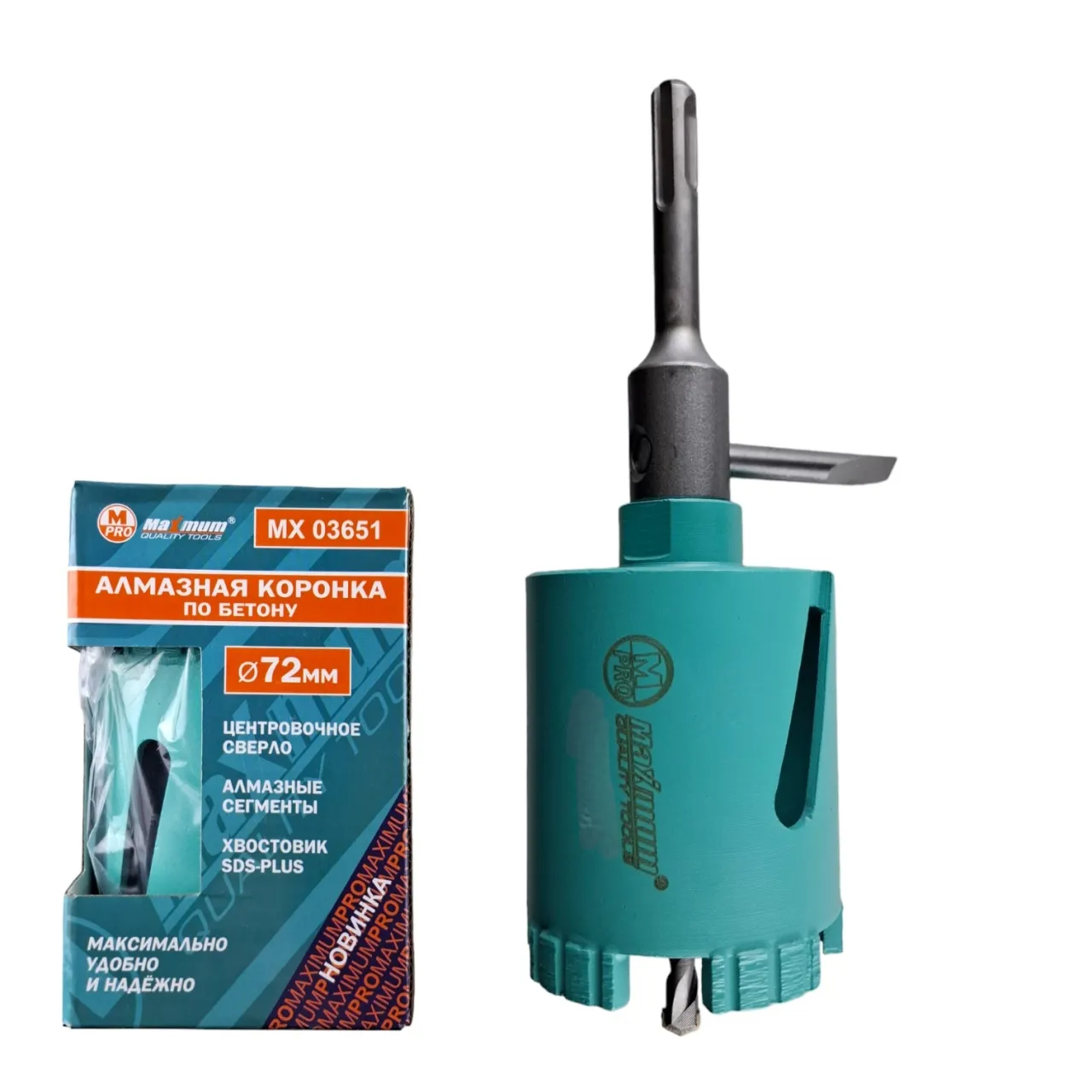 Коронка алмазная для сверления бетона в безударном режиме 72 мм – это узкоспециализированная насадка для перфоратора или дрели, позволяющая сделать отверстие или углубление в различных твердых материалах: ячеистом бетоне, пенобетоне, газосиликате, кирпиче и камне. Толщина твердосплавных зубьев 4,5 мм. Глубина коронки 80 мм. Сверло 100 мм.